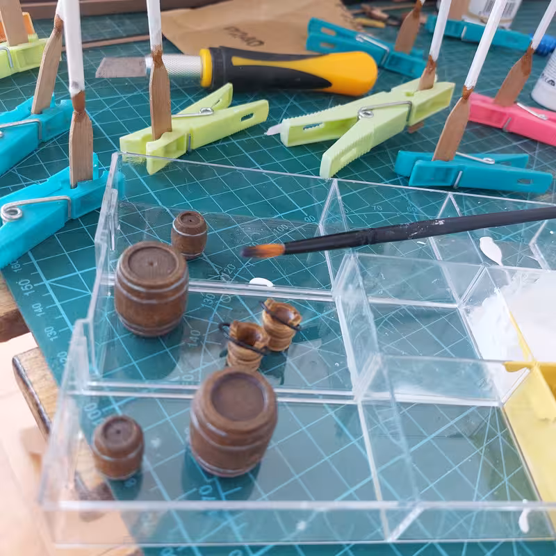Lo tengo avanzado, pero ando dándole vueltas a la arboladura y aparejos.
